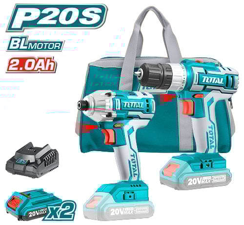 Bộ combo máy siết vít và máy khoan dùng pin 20V hiệu Total TCKLI2006