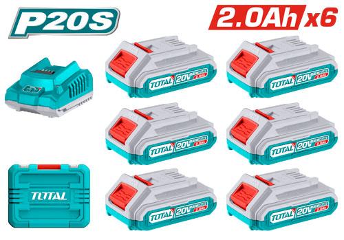 Bộ 6 Pin và 1 sạc Lithium – Ion P20V hiệu Total TFBCLI2062