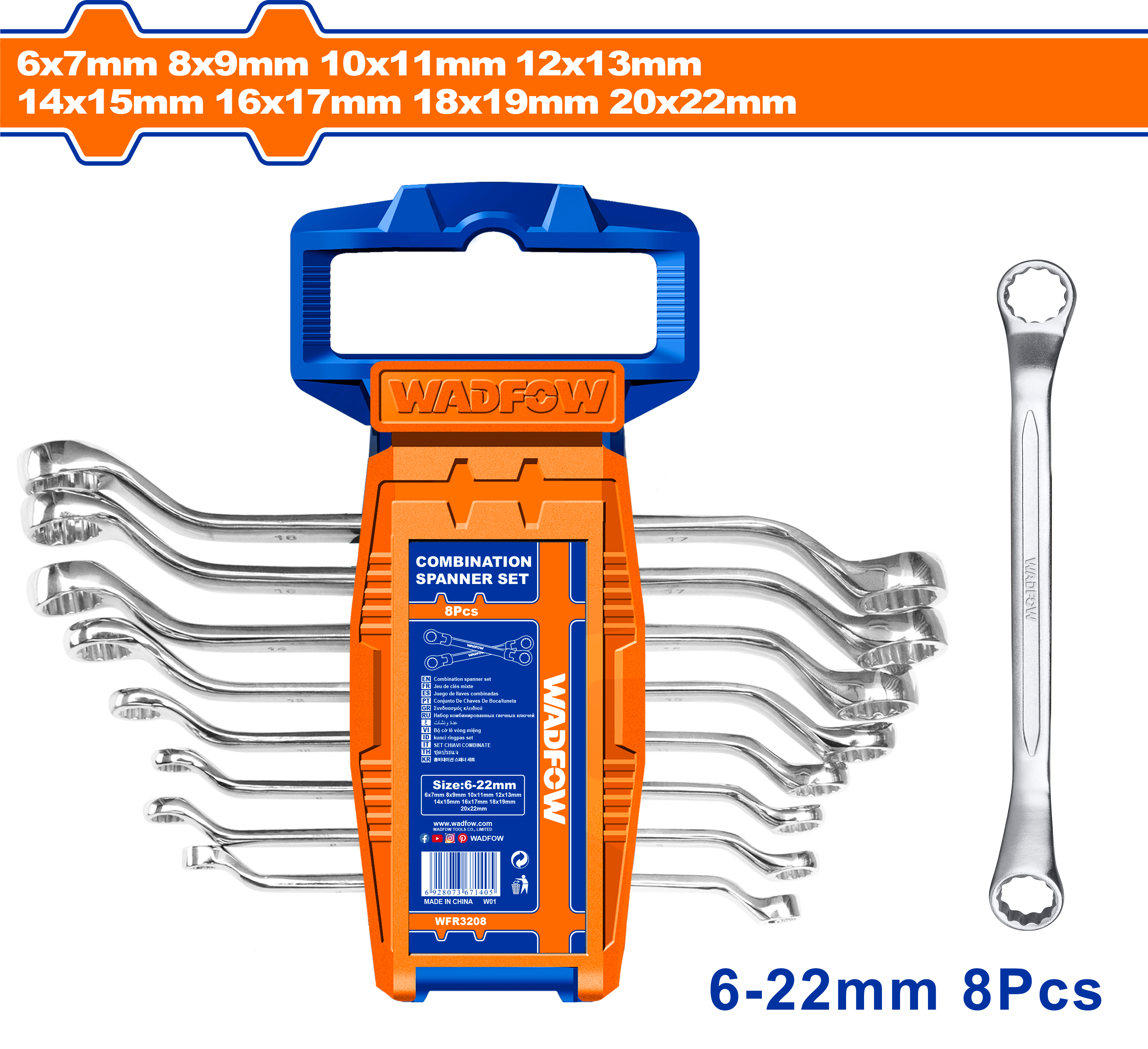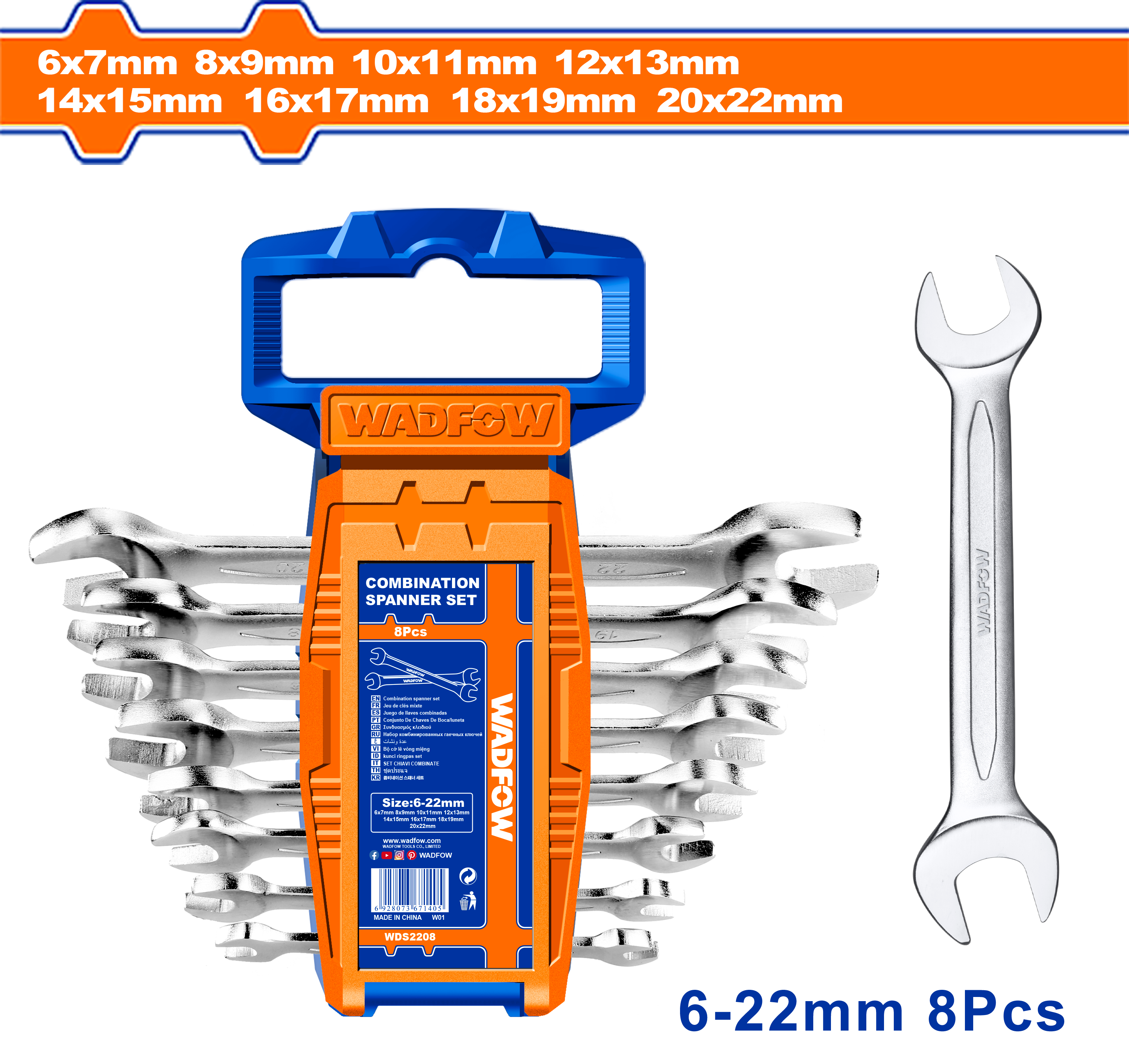 Bộ 8 cờ lê 2 đầu miệng 6-22mm