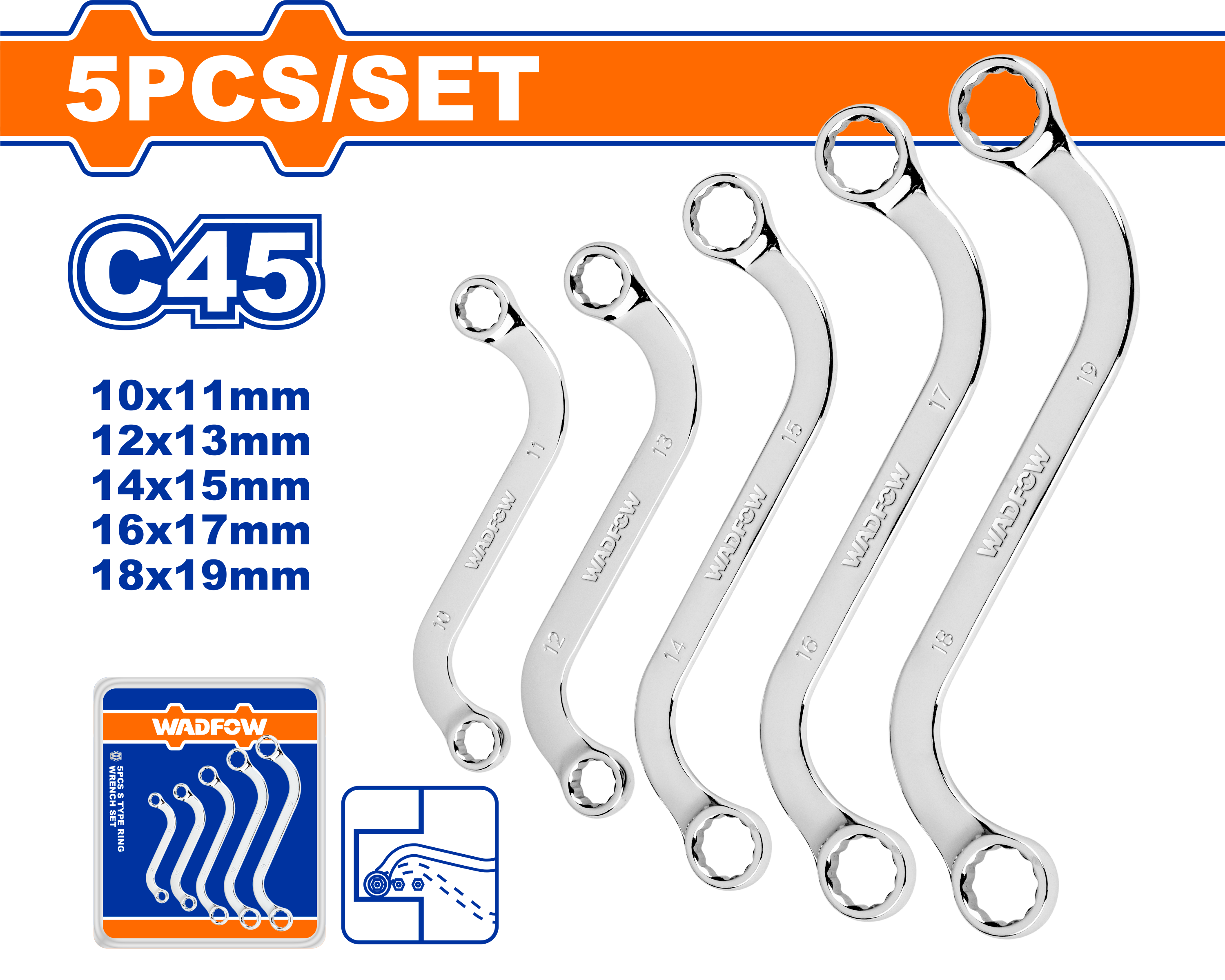Bộ 5 cờ lê hai đầu vòng hình chữ S