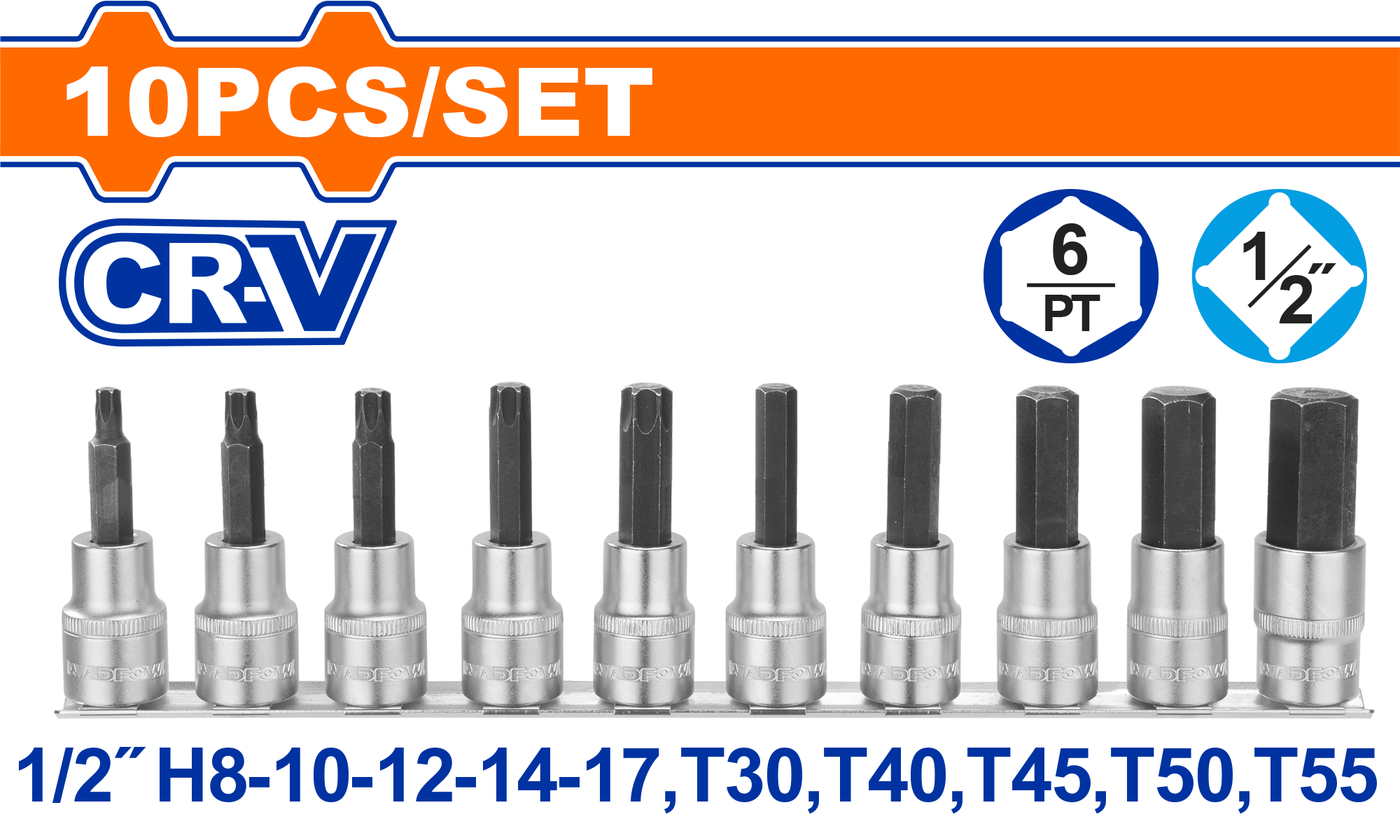 Bộ 12 đầu tuýp1/2″ ra đầu vít lụ giác, sao
