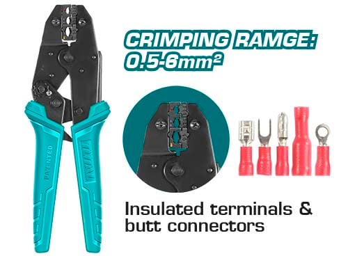 Kềm bấm cos đầu dây cách điện AWG20-10 hiệu Total THCPJ0506