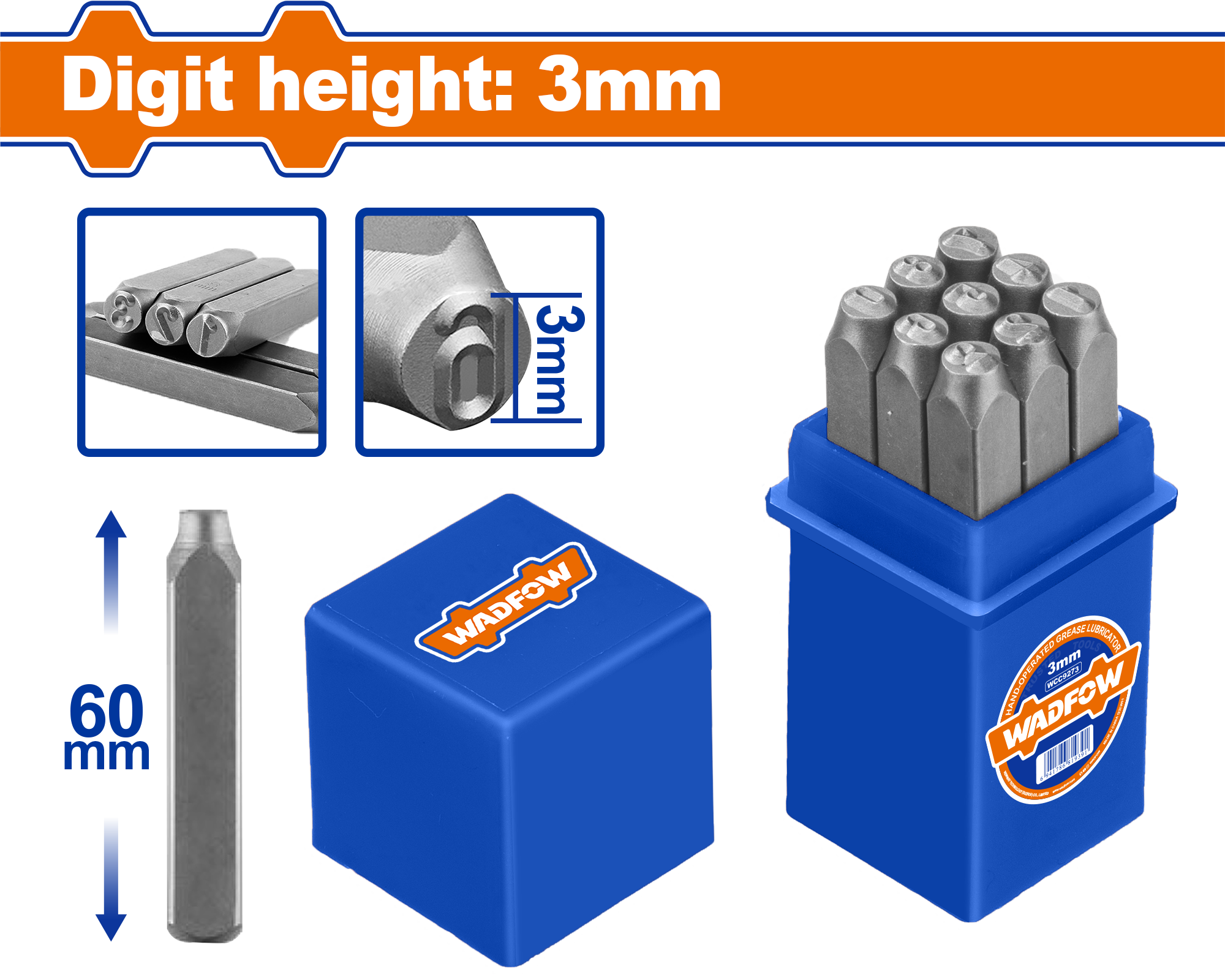 Bộ 9 mũi đột chữ số 3mm