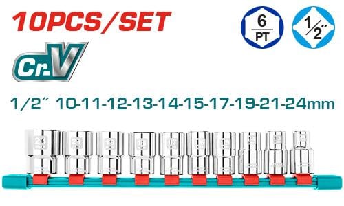 Bộ 10 đầu tuýp 1/2 inch hiệu Total THT121101