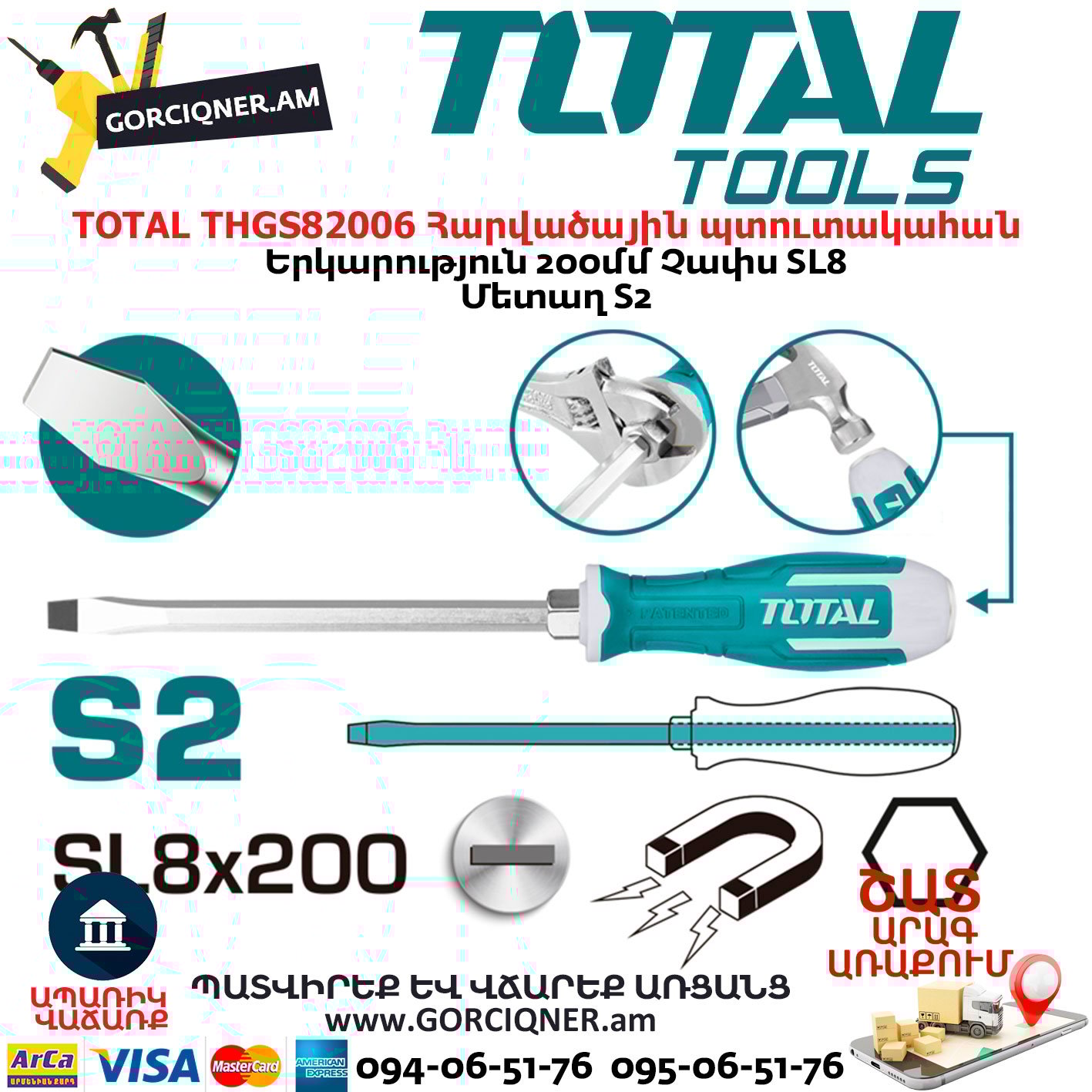 Tua vít dẹp đóng xuyên SL8x200mm hiệu Total THGS82006