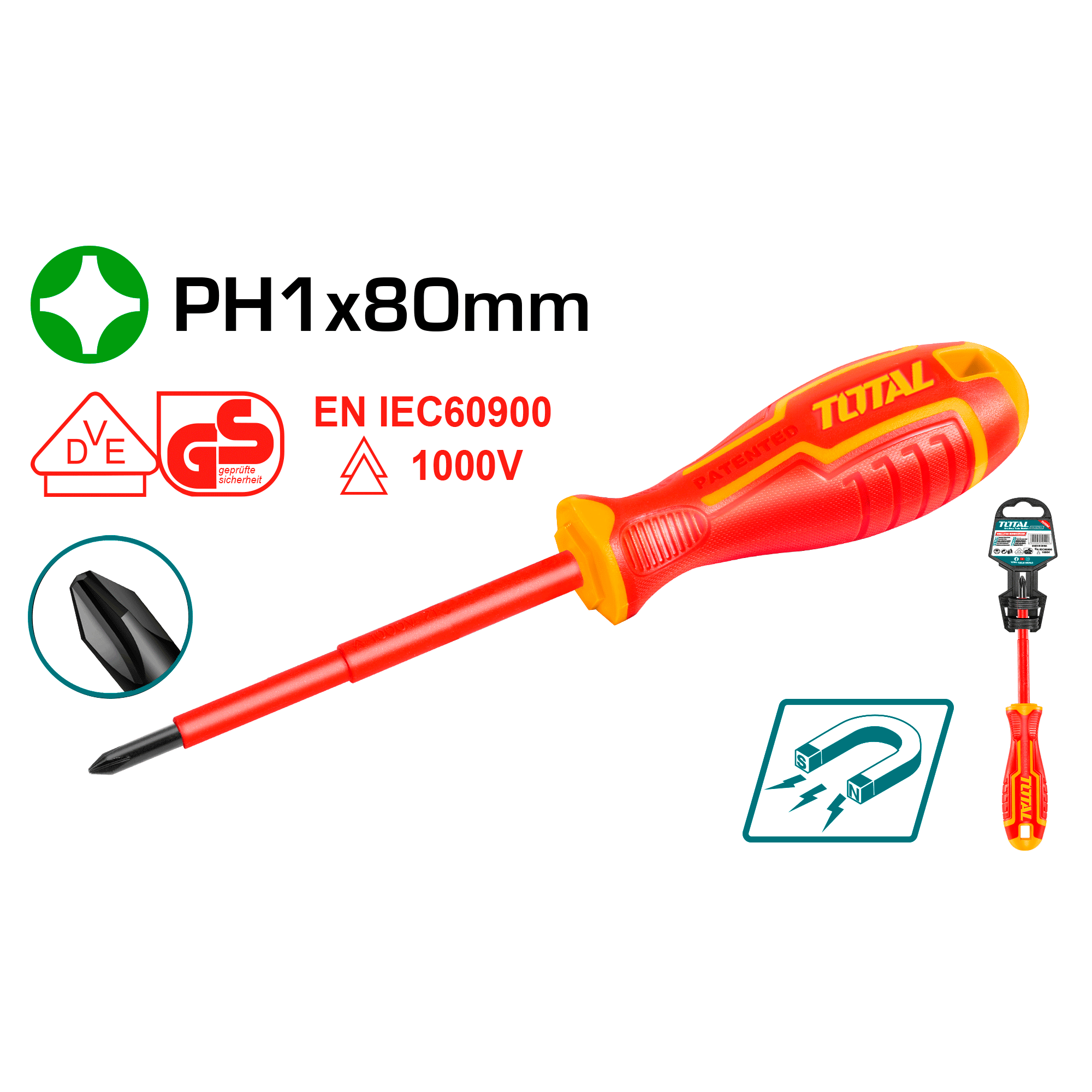 Tua vít dẹp cách điện hiệu Total THTISPH180
