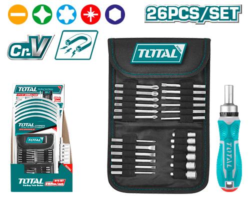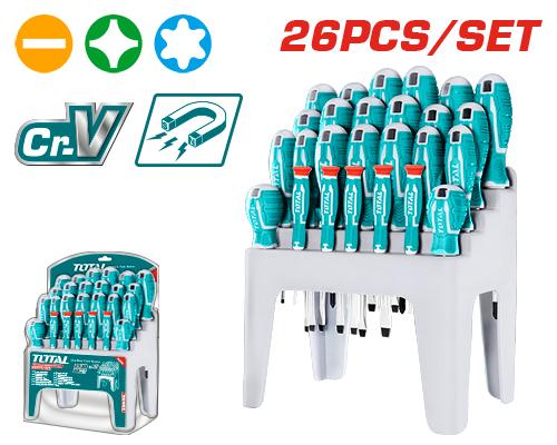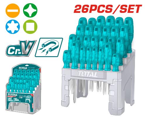 Bộ 26 tua vít dẹp, bake, sao, vuông hiệu Total THTDC252601
