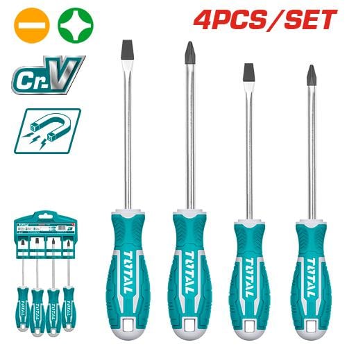 Bộ 4 tua vít dẹp và bake hiệu Total THTDC250401