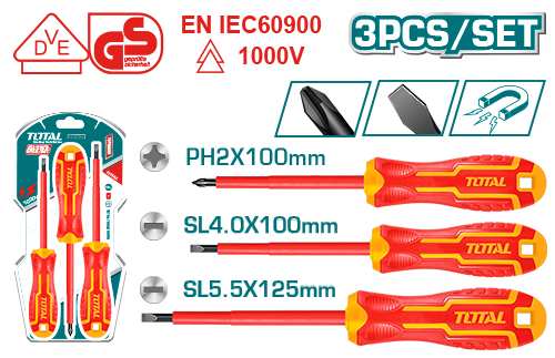 Bộ 3 tua vít cách điện hiệu Total THTIS036