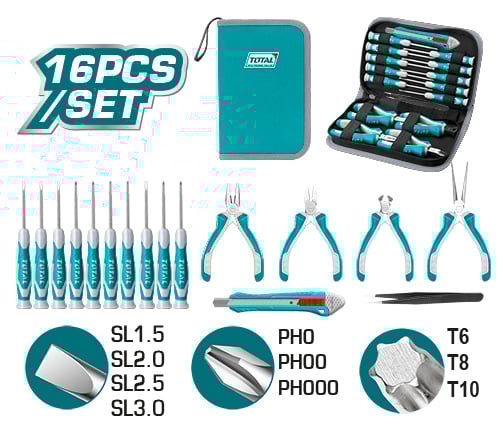 Bộ 16 món tua vít và kềm chuẩn hiệu Total TKTTSK0162