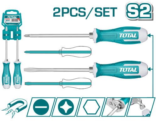 Bộ 2 tua vít dẹp và bake hiệu Total THTDC250201