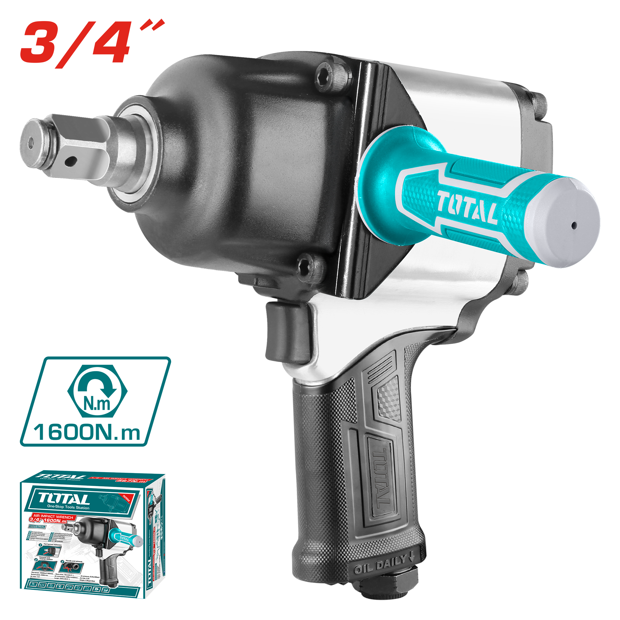 Dụng cụ vặn buloong dùng khí nén 3/4” hiệu Total TAT40341