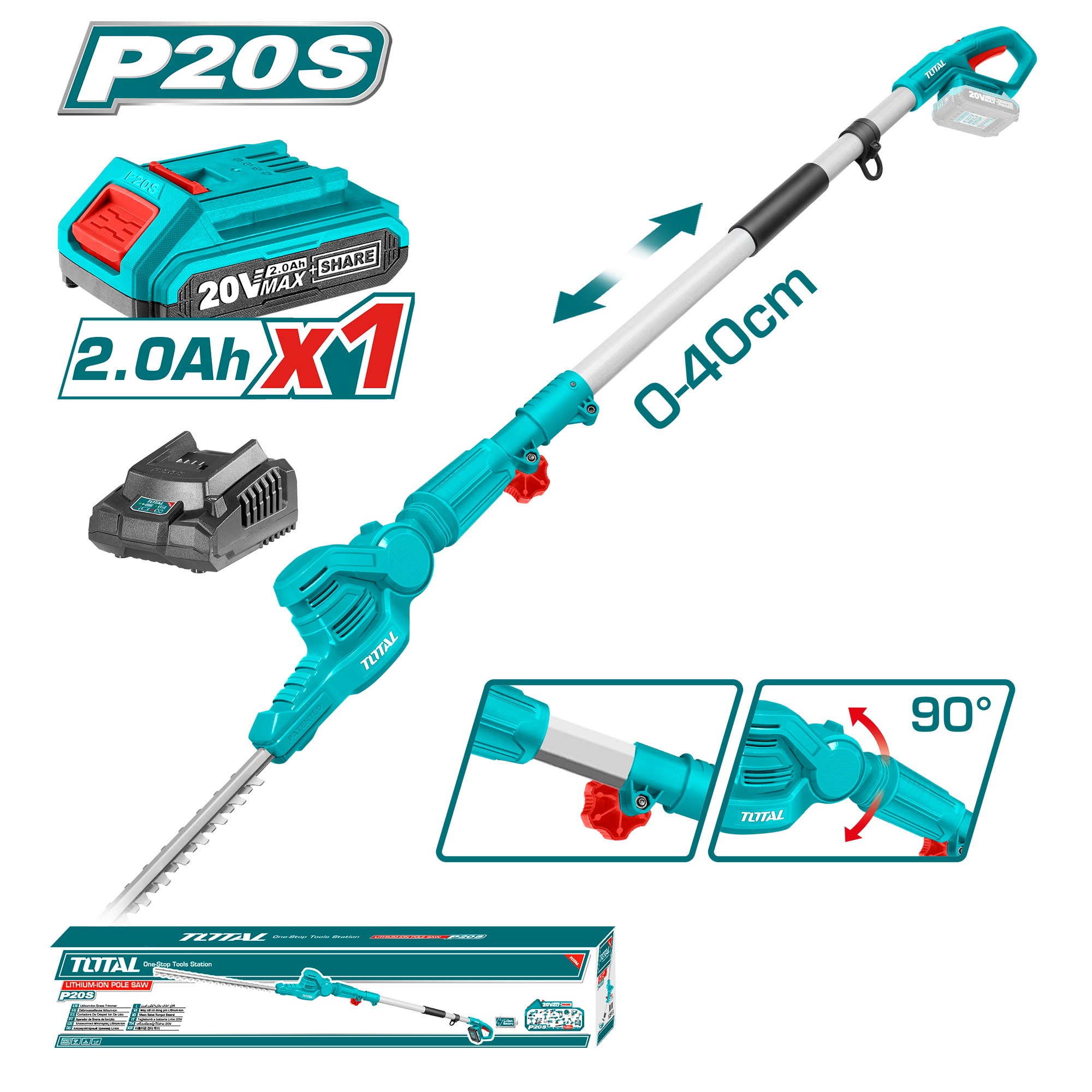 Máy tỉa cành trên cao dùng pin Lithium hiệu Total TPHT2016012 – 20V