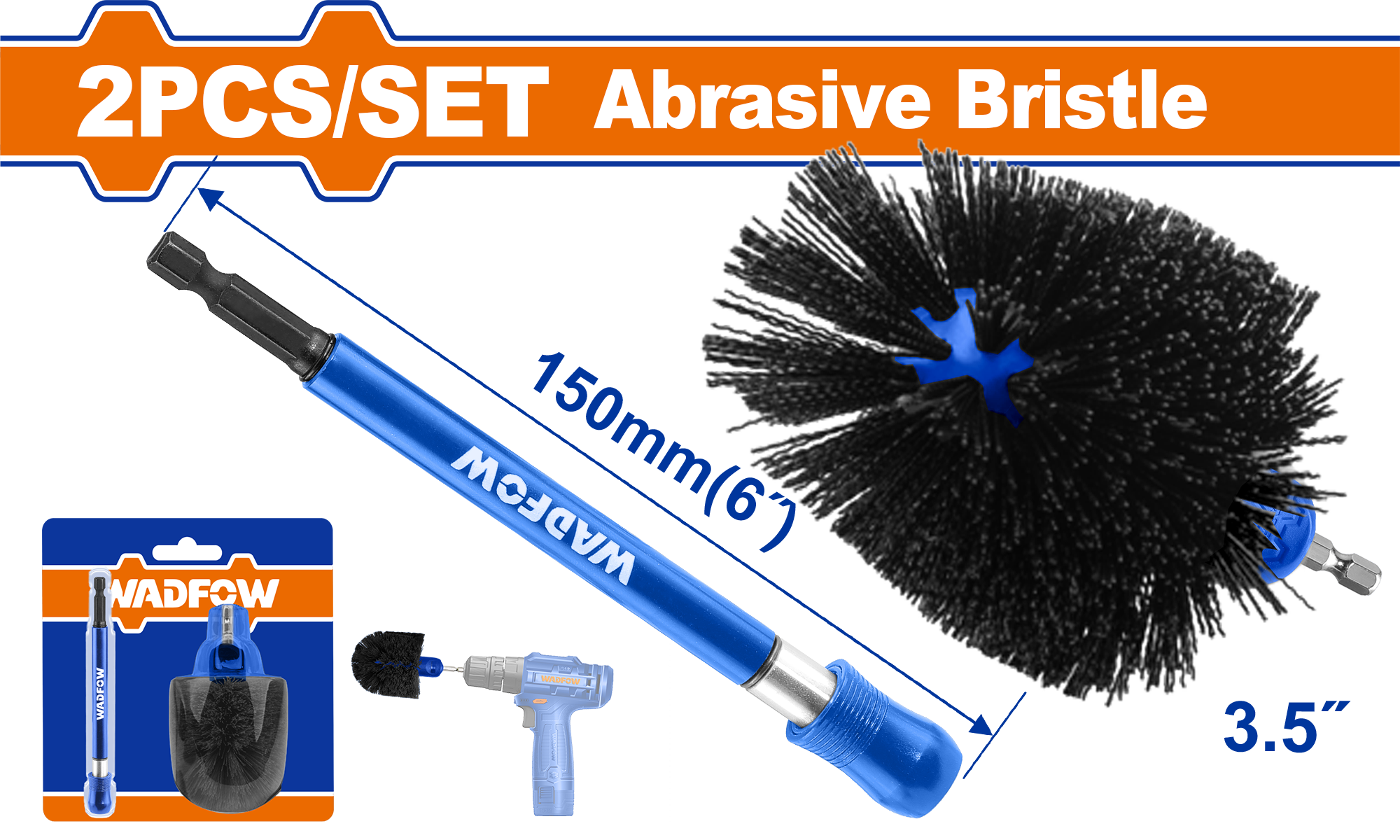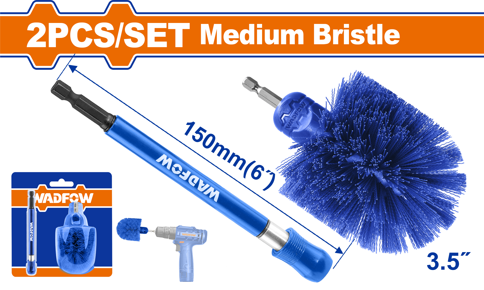 Bộ bàn chải tròn 360 độ và cán nối