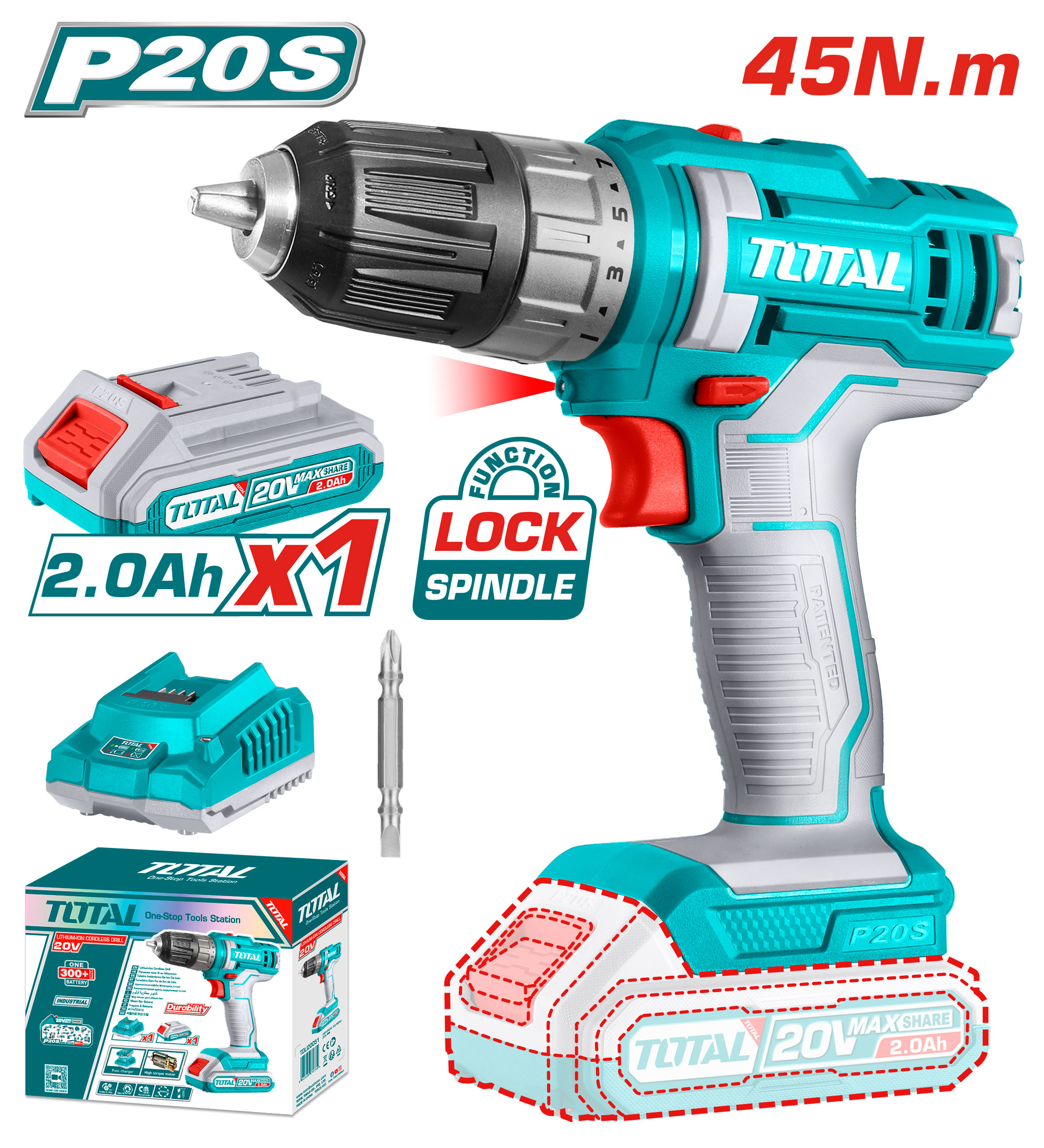 - Phụ kiện: 47 phụ kiện, 3 mũi khoan tường (4mm, 5mm, 6mm), 2 mũi vặn vít 150mm (PH2), 1 pin 2.0Ah (TFBLI42201), 1 sạc (TFCLI42021)