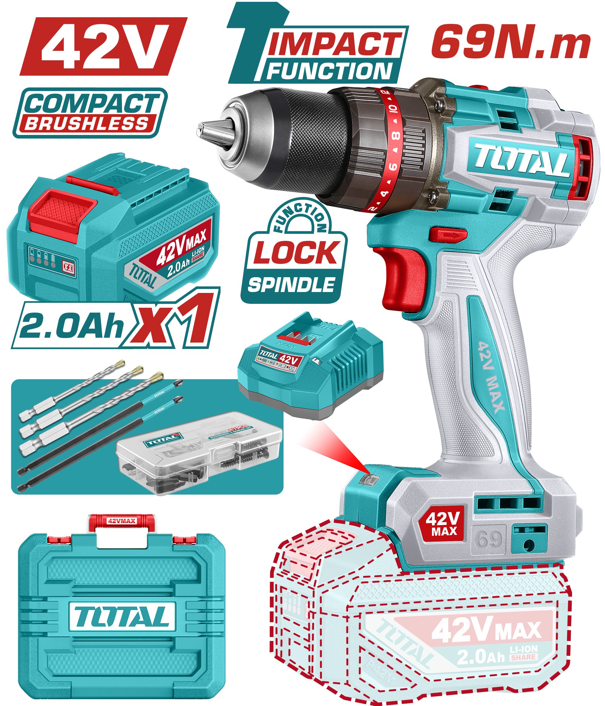 Máy Khoan Búa Không Chổi Than 42V Total-TIDL1426981