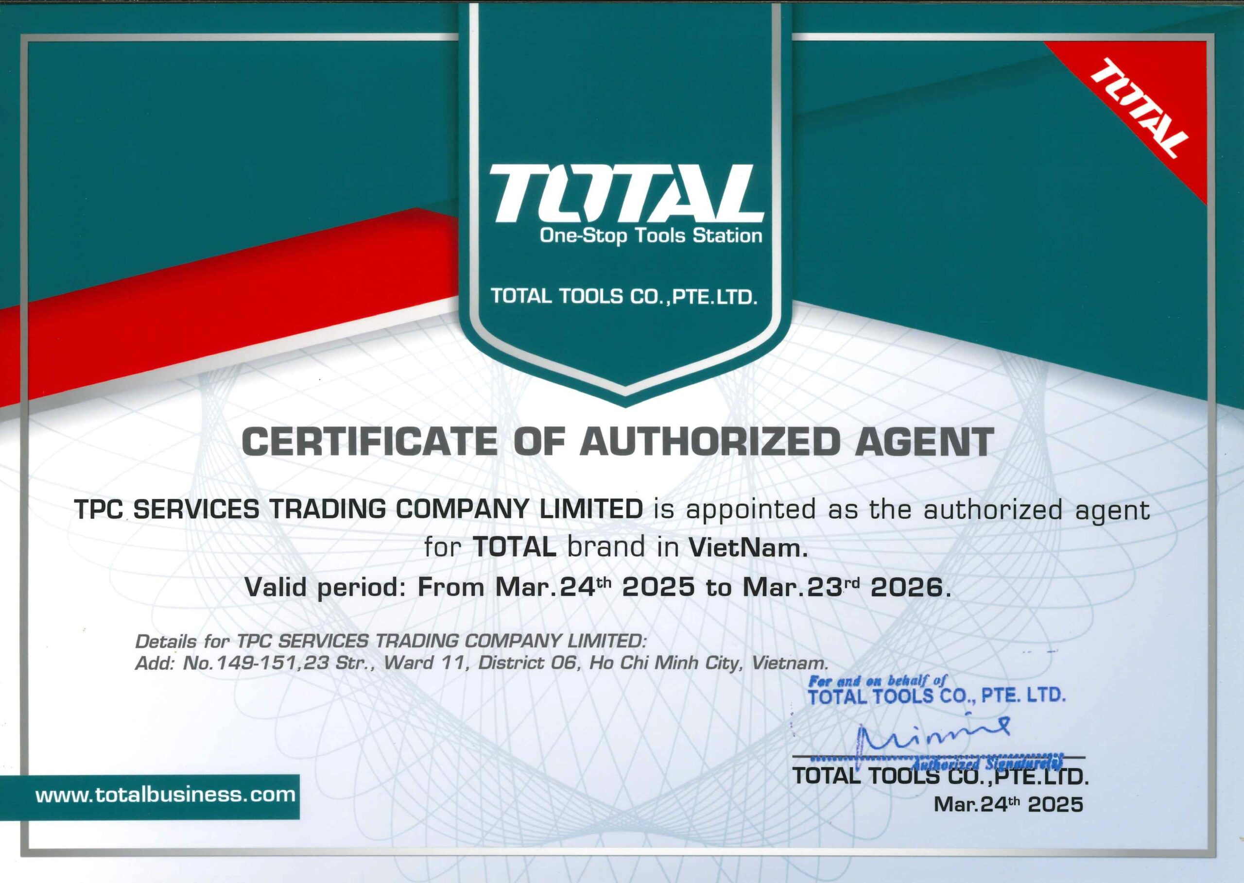 Hiện tại TPC là nhà nhập khẩu và phân phối độc quyền các sản phẩm có thương hiệu nổi tiếng như: TOTAL, WADFOW, DCA, TPC, AGP, ASAK, HELI, MINBAO, GONGYI, YONSKY, SINOYON, HAOMAI,…
