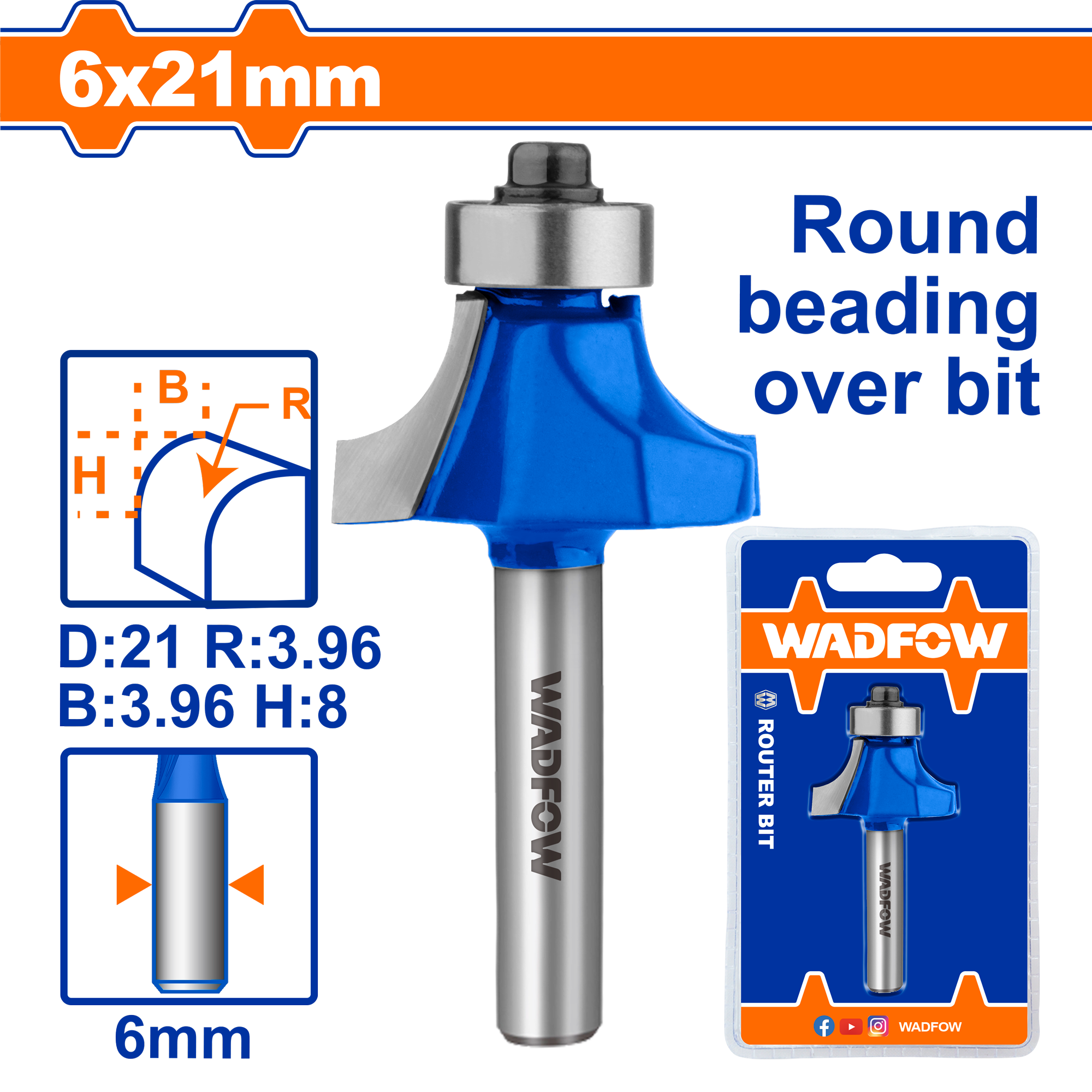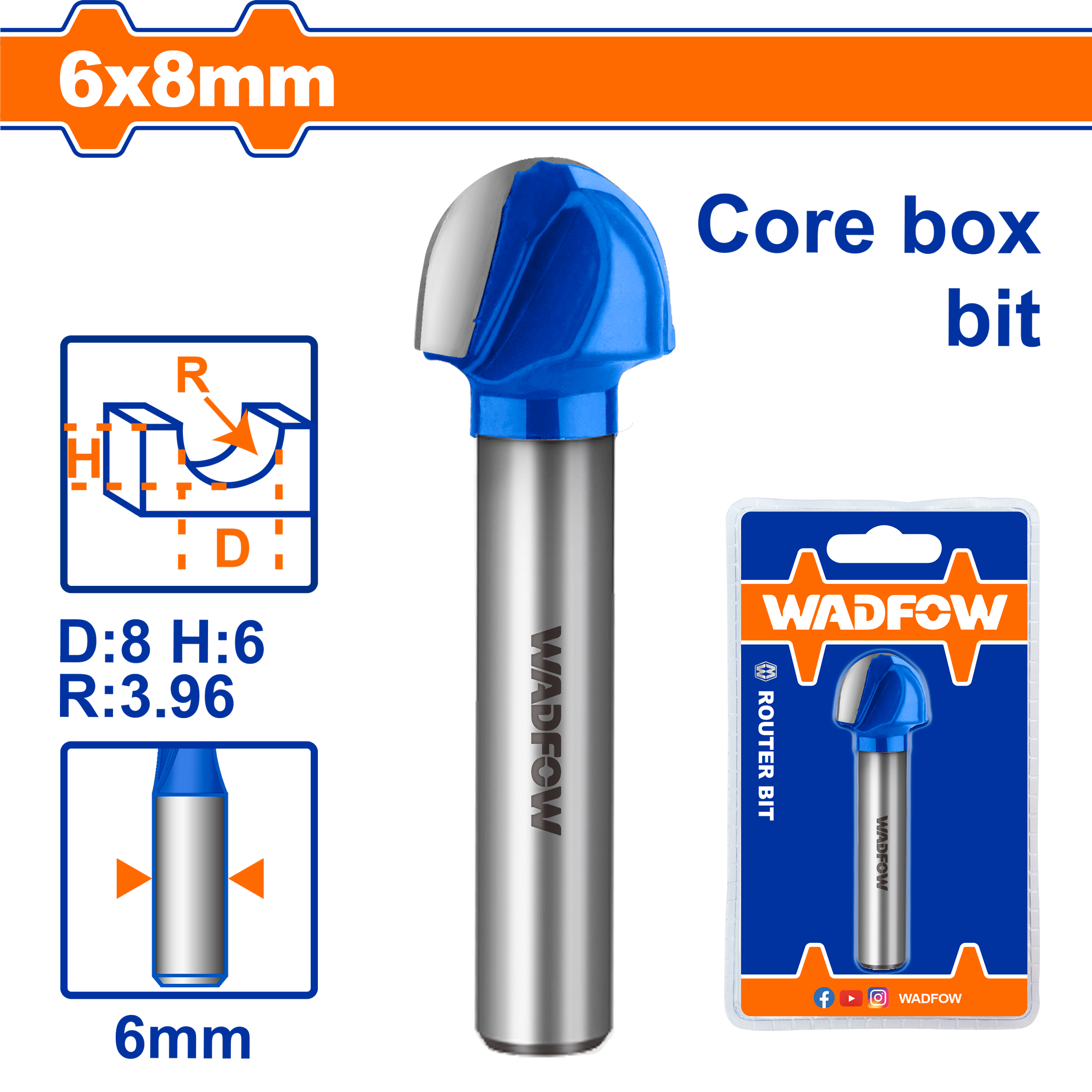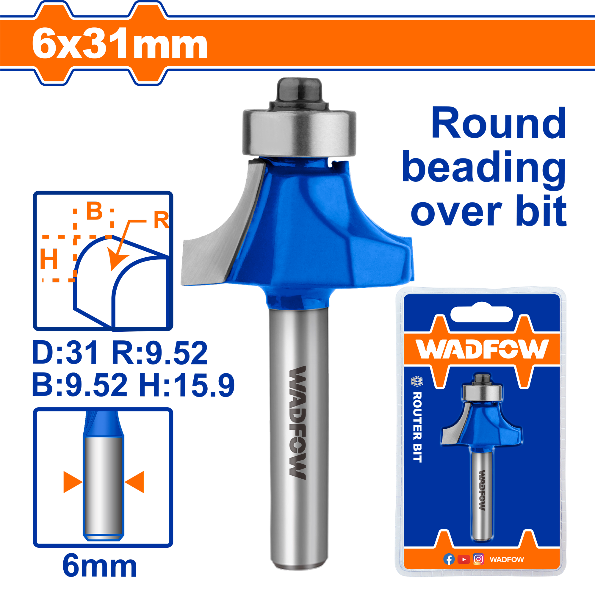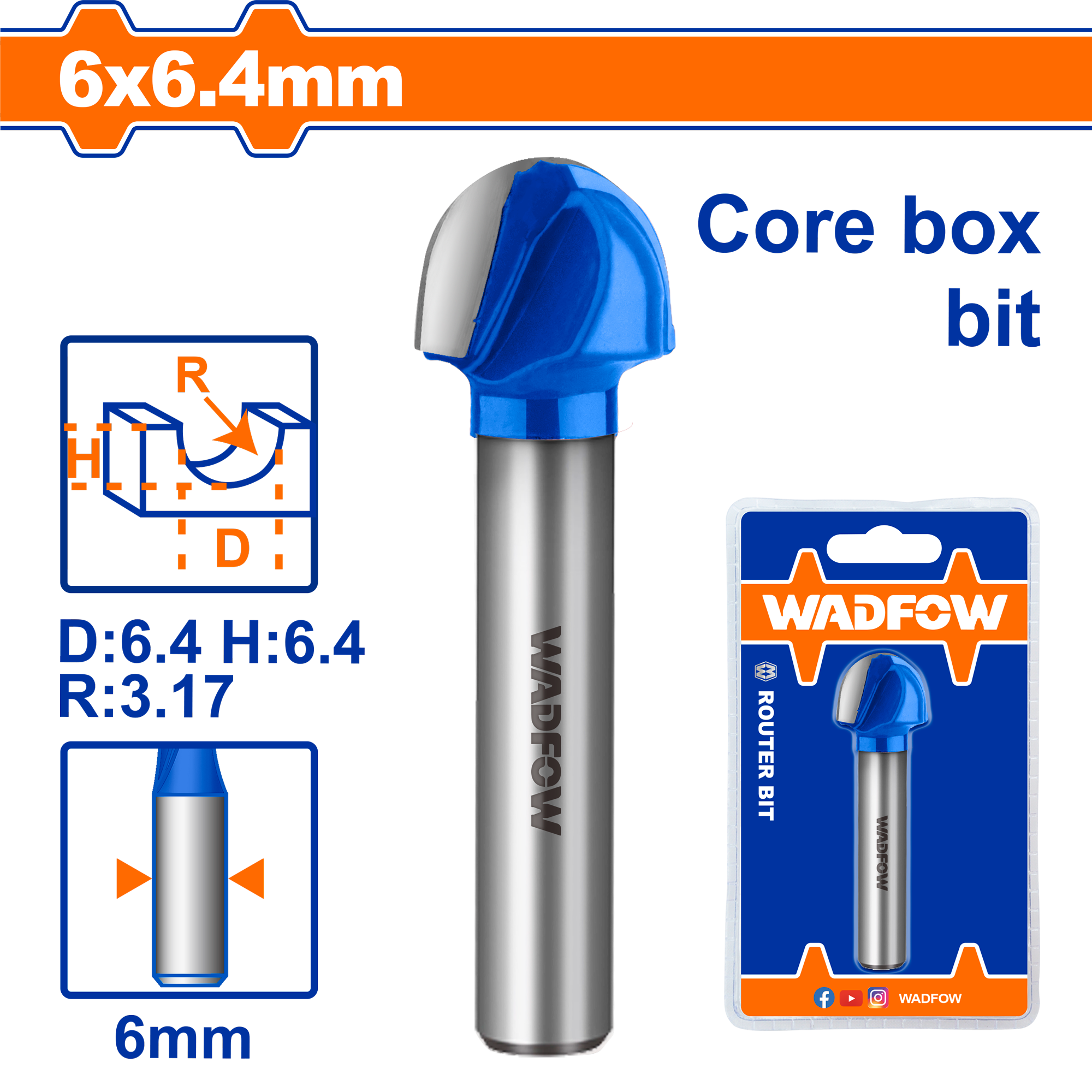 Mũi phay gỗ đầu tròn 6x6x6.4mm