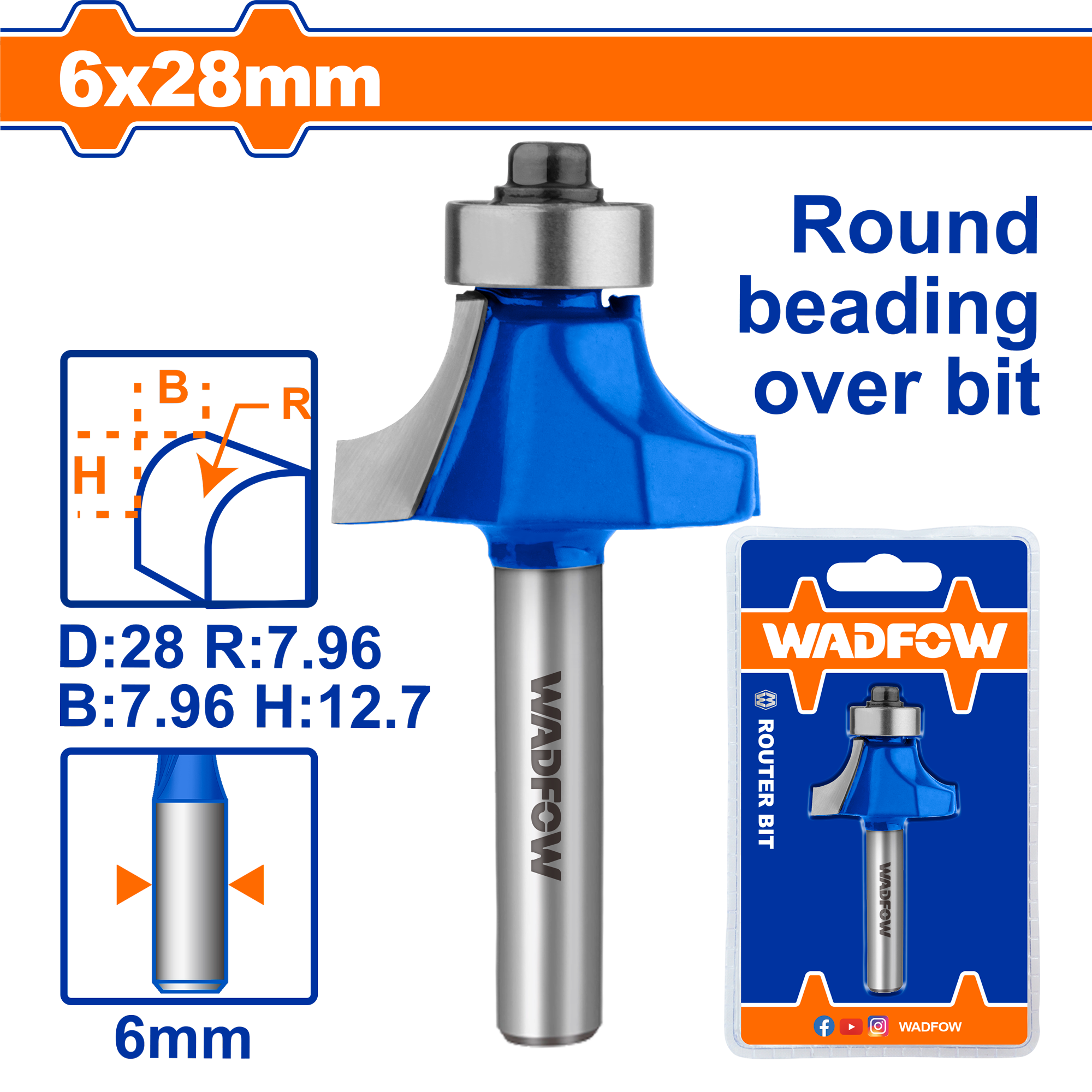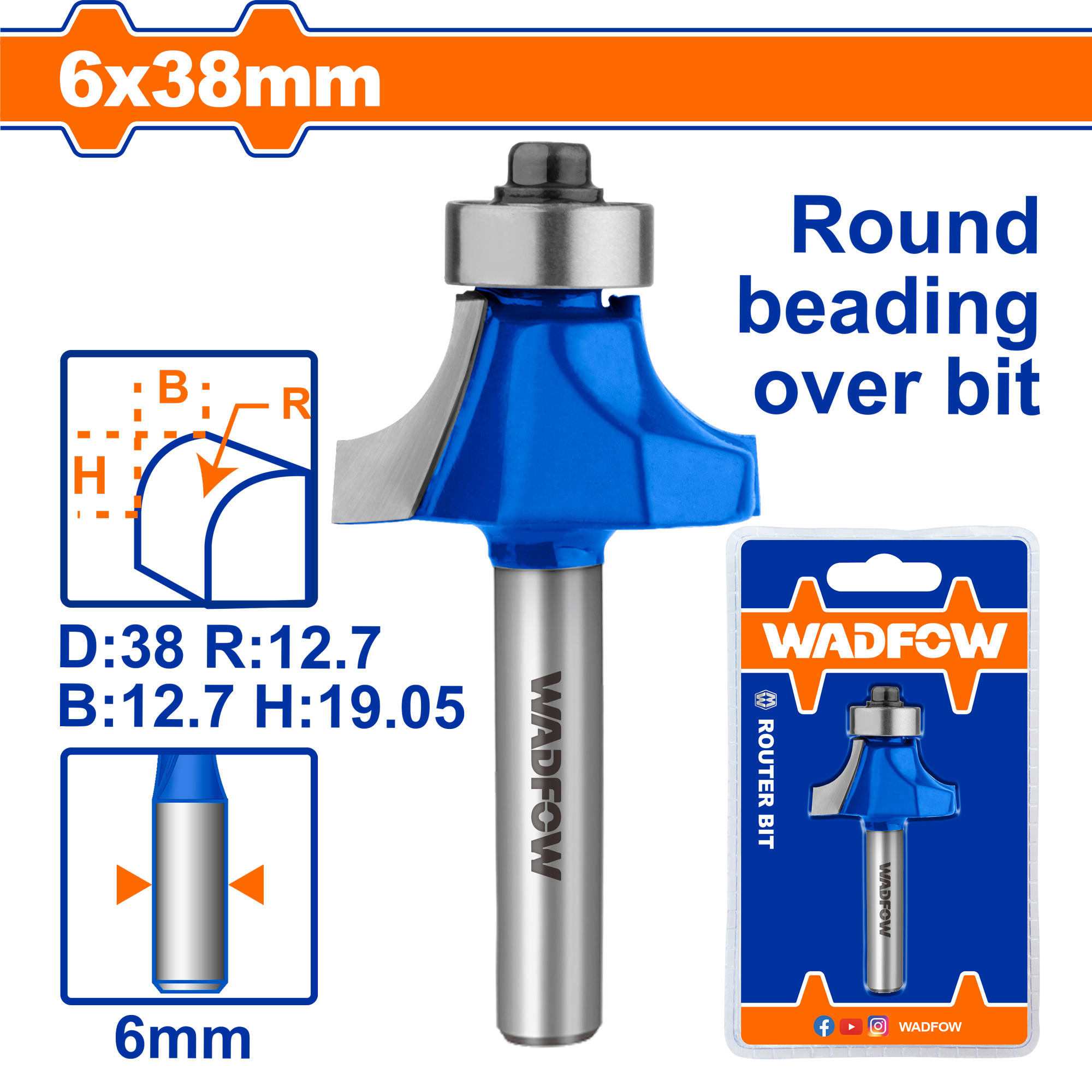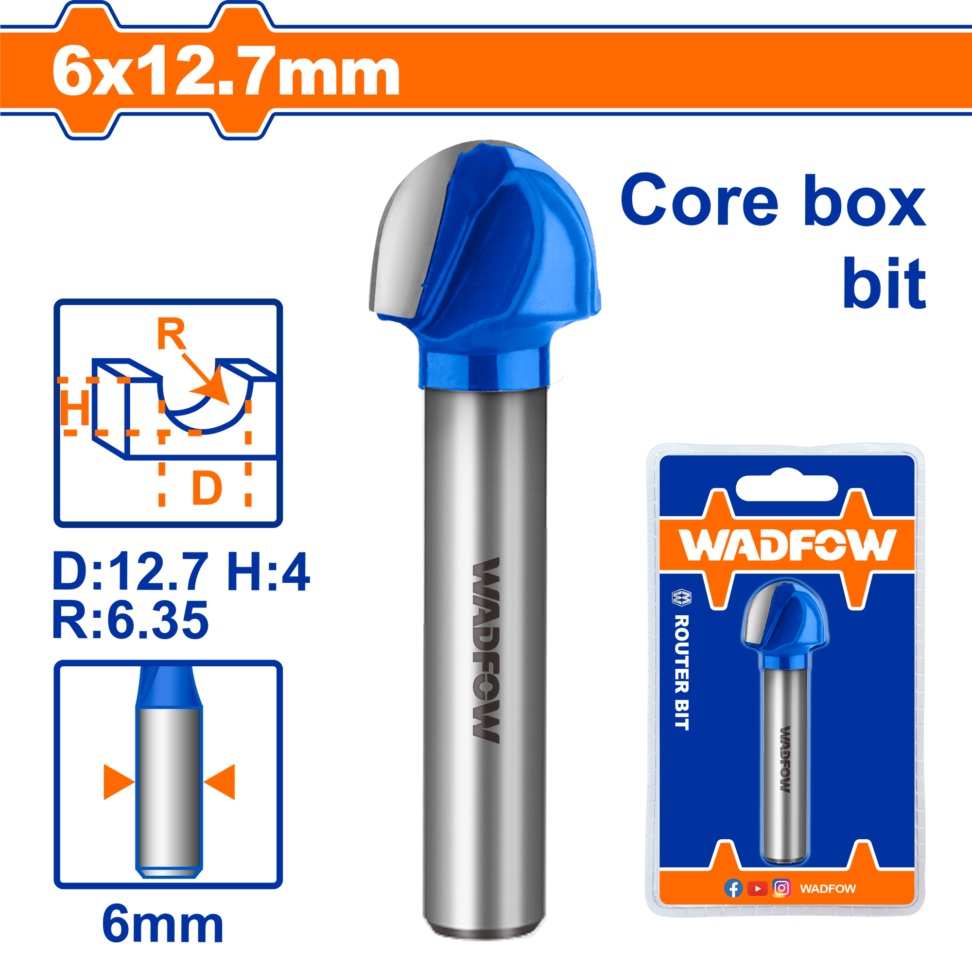 Mũi phay gỗ đầu tròn 6x6x12.7mm