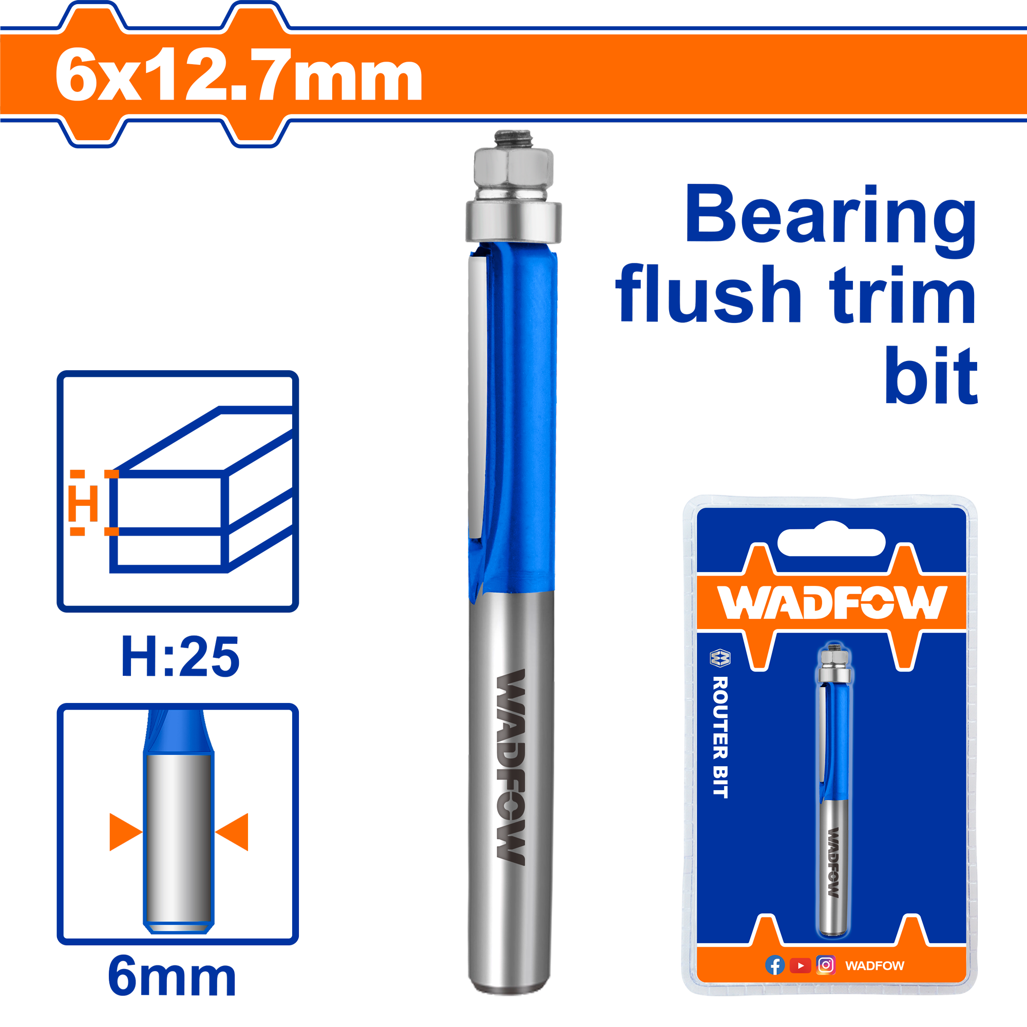 Mũi phay gỗ thẳng bi dưới 6x6x12.7mm