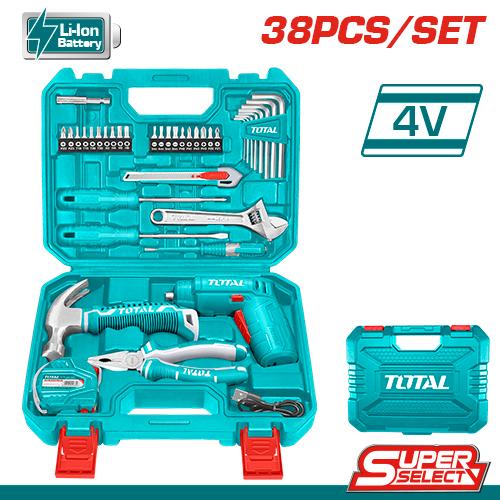 Bộ 38 món bao gồm máy siết vít TSDLI0402 dùng pin 4V
